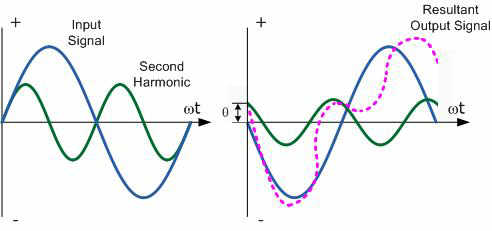 distortion occurs when the fundamental frequency combines with the second harmonic to distort