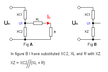 To simplify the branch with the XL and R parallel with XC2, I substitute them with an impedance