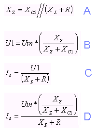 calculations more simple I transform the capacitors and the inductor to reactances. You can see