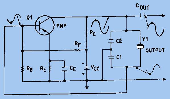 Figure 4 shows the common-base configuration of the Pierce oscillator. Feedback is supplied